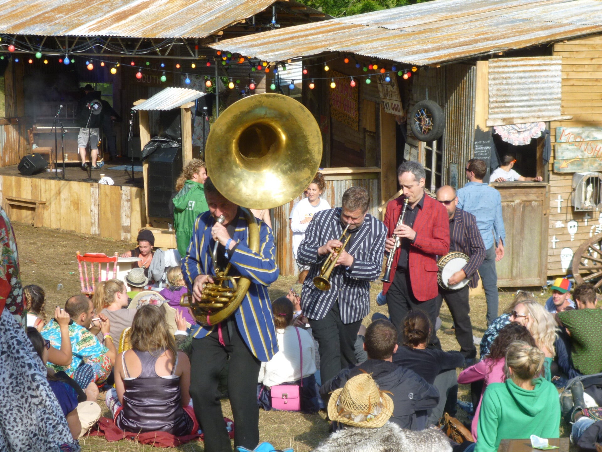 The classic vintage jazz sound with trumpet, trombone, clarinet fronting a rhythm section of piano, drums, double bass (or tuba) and guitar / banjo. We have a pad of neat arrangements transcribed from recordings of the 20's and 30's, and can 'busk' any number of numbers too.